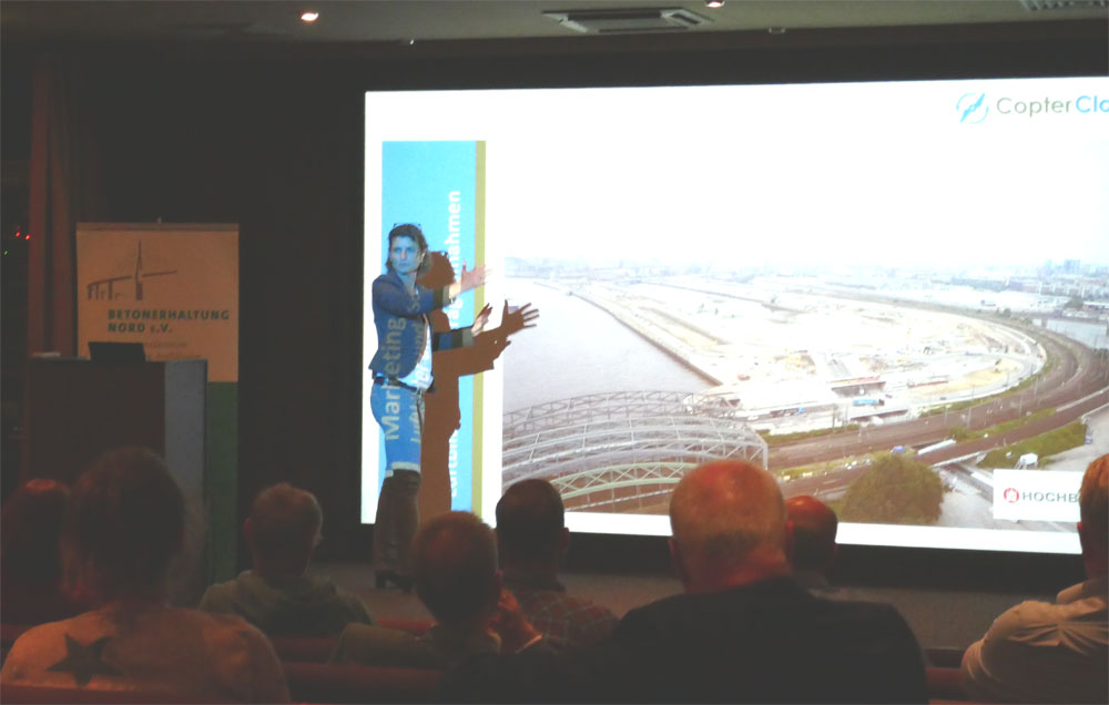 Einsatz von Drohnen für Inspektionen in der Bauwirtschaft. Vortrag von Lelia Miklós auf dem 18. Stammtisch des Vereins Betonerhaltung Nord e.V. am 04.09.2017 im East Hotel Hamburg. Weitere Informationen: http://www.betonerhaltung-nord.de/termine-details/id-18-stammtisch.html